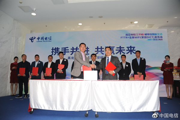 適逢世界電信日,中國電信黑龍江公司推出了千兆5G、千兆寬帶、千兆WiFi,通過這“三千兆”,用戶不論用手機、電腦、平板及各類智能家電等設(shè)備,也不論在何時何地、有線無線,均能暢享極速千兆網(wǎng)絡(luò)和服務(wù)。發(fā)布會上,中國電信黑龍江分公司總經(jīng)理李延平與黑龍江省工信廳廳長張顯豐、新華社黑龍江分社社長李鳳雙、原黑龍江省人大常委會副秘書長孫啟文、黑龍江省通信協(xié)會會長胡立志、黑龍江省住建廳副廳長李守志、黑龍江省總工會副主席高麗光、華為電信系統(tǒng)市場拓展部部長張子彥,為“三千兆”啟動儀式揭牌。蘇寧、京東、華為、OPPO、華濱等10余家電商、廠商代表與中國電信黑龍江公司簽署了2021年度全渠道戰(zhàn)略合作協(xié)議。
