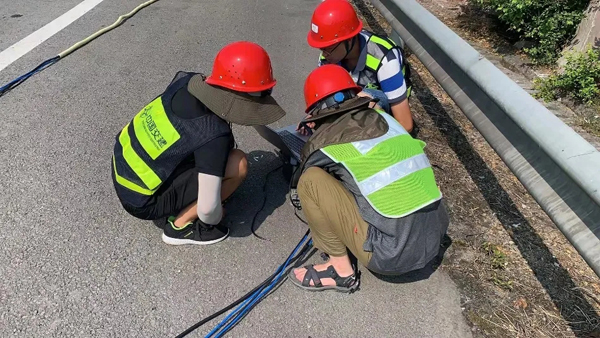 據(jù)老徐介紹,這只是日常施工的一個(gè)縮影,他開(kāi)玩笑的說(shuō)道:“我們團(tuán)隊(duì)都被施工方抱怨無(wú)數(shù)次,喊我們是半夜隊(duì)”。年輕的小林回憶道,清晨開(kāi)工喊著“今天感覺(jué)也沒(méi)那么熱吧”,然而移車到下個(gè)點(diǎn),氣溫就逐漸上升。標(biāo)定測(cè)量樁號(hào)一圈下來(lái)已經(jīng)渾身濕透,高車籃子燙得無(wú)法用手扶,只能戴著手套操作。上午9點(diǎn)剛過(guò),地面工作人員完成線纜敷設(shè)安裝工作后已經(jīng)躲到路旁,調(diào)測(cè)人員在車?yán)锎蠛沽芾,車?nèi)空調(diào)仿佛壞了一般,路面標(biāo)定人員和高車上的實(shí)施人員衣服已經(jīng)濕透。天氣預(yù)報(bào)今日最高溫42度,突然襲來(lái)的高溫,10點(diǎn)已經(jīng)難以讓人承受,估計(jì)高速路面已超過(guò)50多度,鞋底都開(kāi)始發(fā)熱。