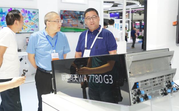 (觀眾在2023中國算力大會聯(lián)想展區(qū)了解聯(lián)想問天WA 7780 G3 AI大模型訓(xùn)練服務(wù)器)