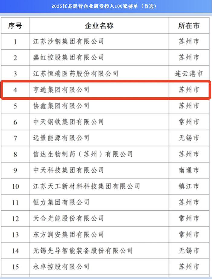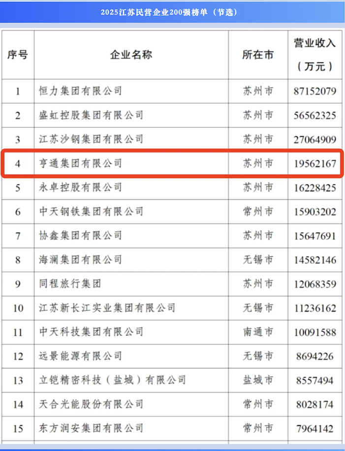 再進(jìn)一步!亨通榮登2025江蘇民企百強(qiáng)第4位