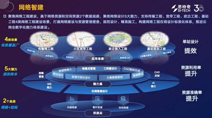 當(dāng)前,運(yùn)營商網(wǎng)絡(luò)工程建設(shè)領(lǐng)域痛點(diǎn)突出,“資源數(shù)據(jù)割裂、設(shè)計(jì)標(biāo)準(zhǔn)不統(tǒng)一、施工精準(zhǔn)度不足”的問題已成為行業(yè)普遍困擾。傳輸、寬帶、政企、基站四大類工程場景需求差異顯著,而傳統(tǒng)設(shè)計(jì)依賴人工勘察,不僅耗時(shí)耗力,還易因數(shù)據(jù)誤差引發(fā)資源錯(cuò)配,直接影響網(wǎng)絡(luò)建設(shè)質(zhì)量與后續(xù)運(yùn)維效率。針對這一核心痛點(diǎn),思特奇“網(wǎng)絡(luò)智建”解決方案以物理資源與空間資源為雙數(shù)據(jù)底座,聚合網(wǎng)絡(luò)設(shè)計(jì)五大核心能力,構(gòu)建全流程自動化管控體系,為四類工程場景提供標(biāo)準(zhǔn)化、智能化支撐。