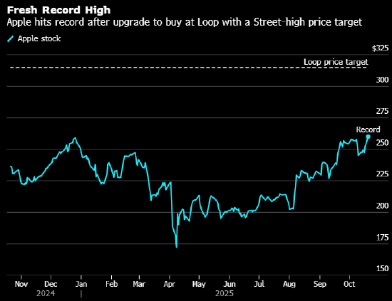 蘋(píng)果股價(jià)上漲3.9%,至262.24美元,突破自去年12月以來(lái)的歷史高點(diǎn)。今年多數(shù)時(shí)間,蘋(píng)果在標(biāo)普500成分股中表現(xiàn)一直低迷,4月時(shí)跌幅一度達(dá)到31%。但自那以來(lái),股價(jià)已累計(jì)上漲超過(guò)50%,并在9月下旬回到去年年末收盤(pán)位之上。