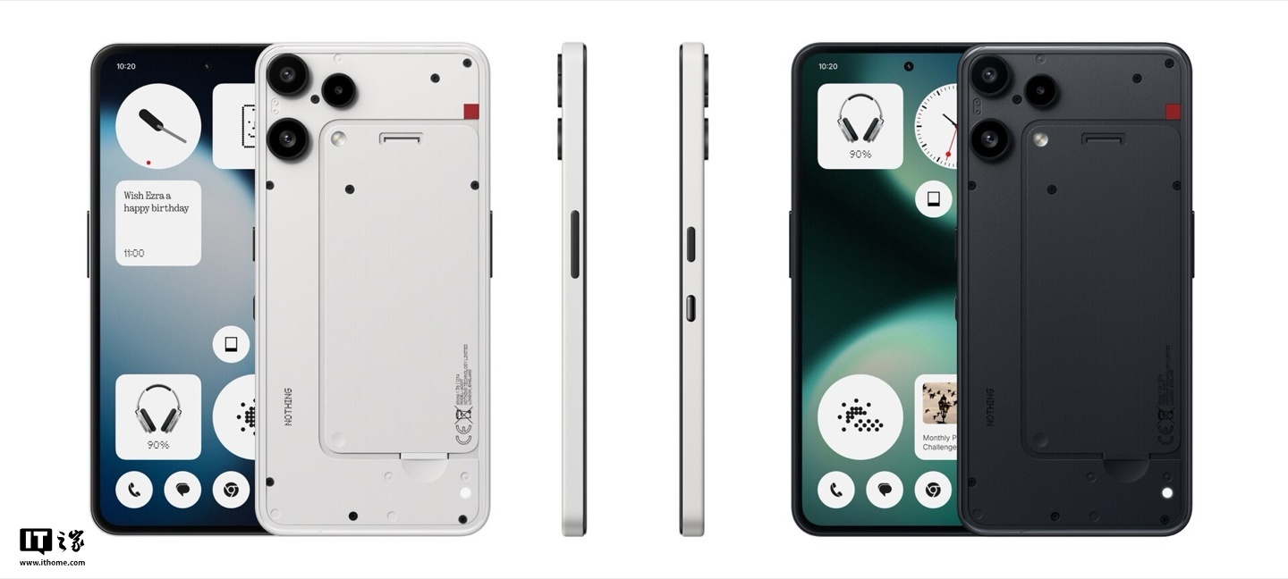 據官方新聞稿介紹,這款手機采用了品牌家族式的半透明后蓋設計,保留了簡化的 Glyph 燈效系統(tǒng),只用一顆 LED 燈來提示通知、來電,擁有黑色、白色兩種配色。