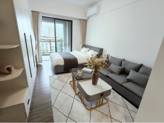 推開(kāi)房門(mén),3.2米的層高和明亮的陽(yáng)光大窗瞬間帶來(lái)開(kāi)闊感。房間雖不大,但設(shè)計(jì)巧妙,功能齊全:獨(dú)立廚房讓你能偶爾下廚慰勞自己;五星級(jí)床墊保證每一晚的優(yōu)質(zhì)睡眠;封閉式陽(yáng)臺(tái)搭配洗衣機(jī),解決了晾曬難題;甚至還有一個(gè)精心布置的小書(shū)桌或沙發(fā)區(qū),作為專(zhuān)屬的“精神角落”。