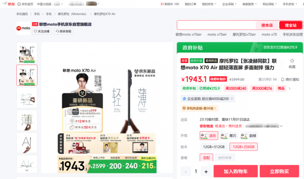 1943元起!來京東11.11先人一步下單聯(lián)想moto X70 Air贈聯(lián)想AI降噪耳機X600