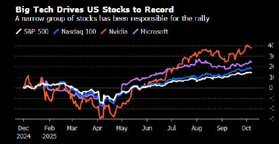 隨著美國股市的創(chuàng)紀(jì)錄上漲推高估值,圍繞AI泡沫的擔(dān)憂升溫。科技股權(quán)重較高的納斯達(dá)克(23043.3778, 255.02, 1.12%)100指數(shù)今年上漲18%,預(yù)期市盈率為28倍,而其10年平均水平為23倍。