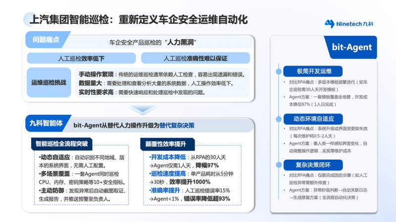 九科信息bit-Agent助力上汽集團(tuán)智能巡檢項目