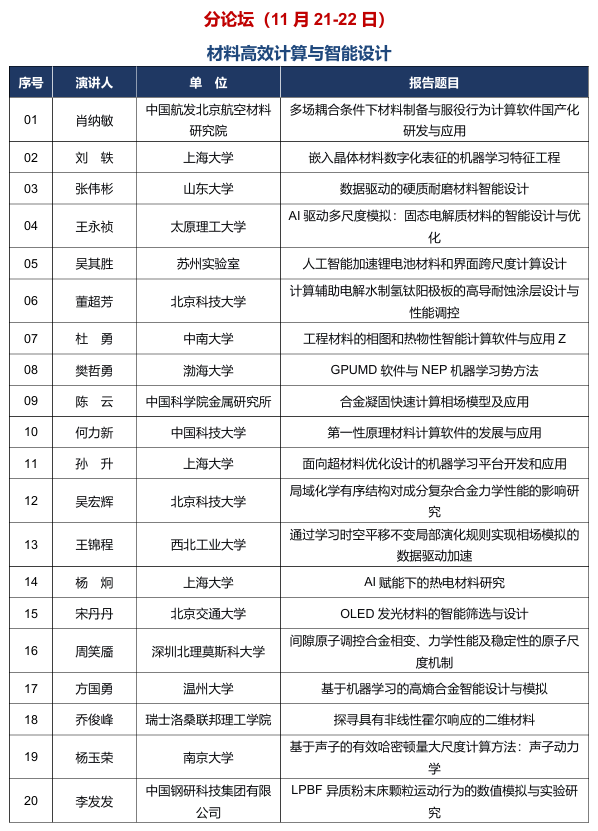 11月20日:開幕式、大會報告,新材料大數(shù)據(jù)創(chuàng)新聯(lián)盟會員大會