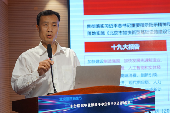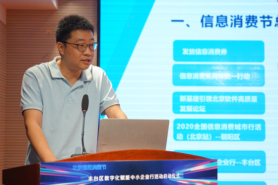 2020年9月21日,由北京市經(jīng)濟和信息化局、北京市商務局、豐臺區(qū)政府聯(lián)合主辦,豐臺區(qū)科學技術和信息化局、北京軟件與信息服務業(yè)促進中心、中關村現(xiàn)代信息消費應用產(chǎn)業(yè)技術聯(lián)盟、中國信息通信研究院智能+學院、北京工業(yè)互聯(lián)網(wǎng)技術創(chuàng)新與產(chǎn)業(yè)發(fā)展聯(lián)盟共同承辦的北京信息消費節(jié)系列活動之豐臺區(qū)數(shù)字化賦能中小企業(yè)行活動啟動儀式暨豐臺區(qū)“新基建”“新場景”政策宣講會成功舉行。