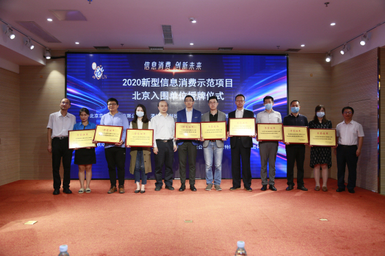 本次活動為京東、酒仙網(wǎng)、蘇寧、多點等榮獲“2020年工業(yè)和信息化部新型信息消費示范項目”的北京企業(yè)授牌。